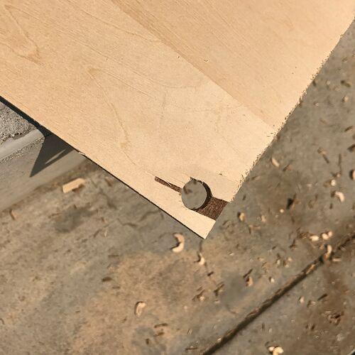 入手しやすく、値段も手頃なので オイラの工作には登場頻度が高いシナベニア。 でも、なかなか厄介な面もありまして、 ドリルで穴を空けると、↓こんな感じに表面が剥がれる事があります。 太いドリル程、こうなりやすいです。 原因はドリルの回転速度の遅さ…